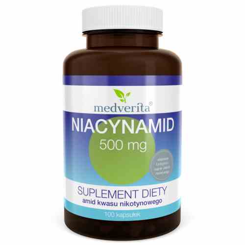 Das Nahrungsergänzungsmittel Medverita Niacinamid 500 mg 100 Kapseln ist ein reines Produkt mit Niacin in Form von Nicotinsäureamid in einer praktischen Kapselform.